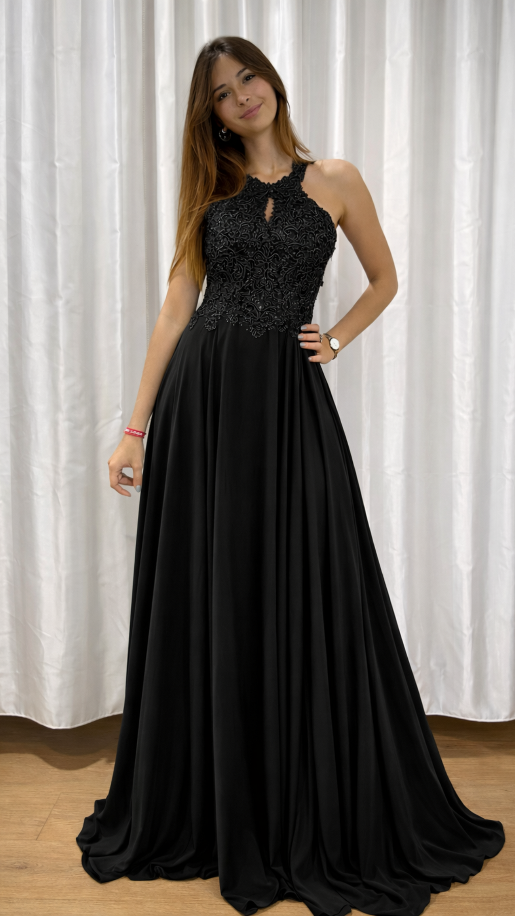 ✨ Abito lungo in chiffon con ricami e coppe imbottite ✨