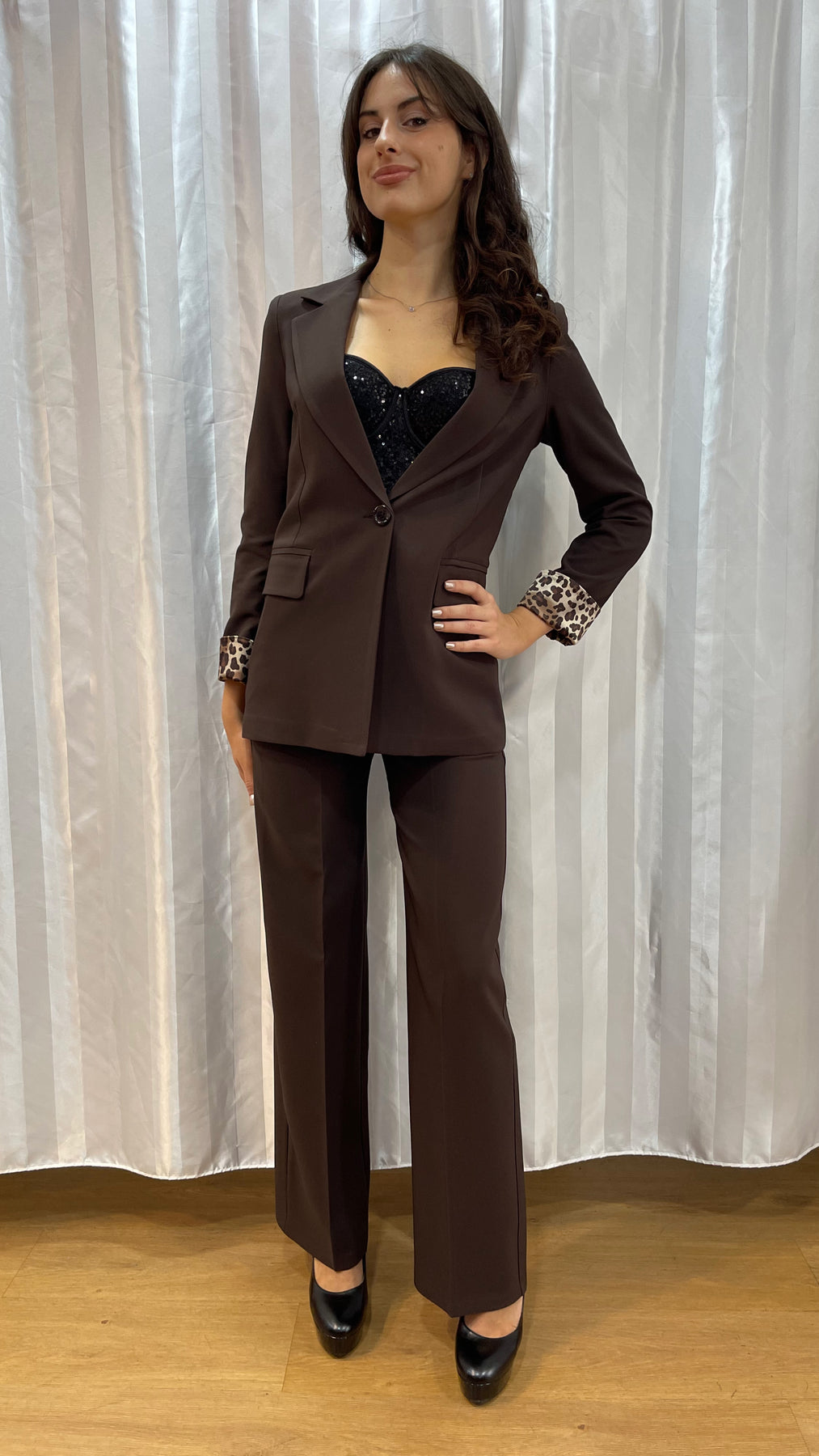 Un look raffinato, deciso e pieno di carattere: questo completo è la scelta perfetta per chi desidera uno stile elegante ma con un tocco di personalità.