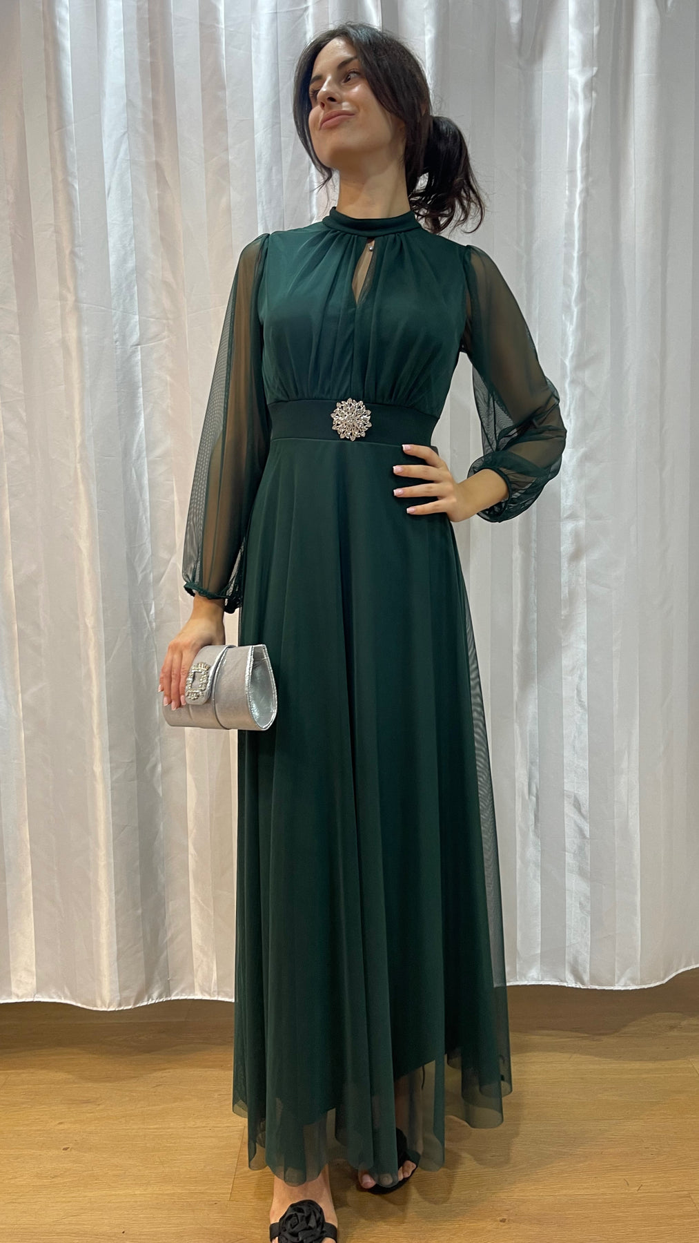 Abito lungo elegante con maniche in chiffon